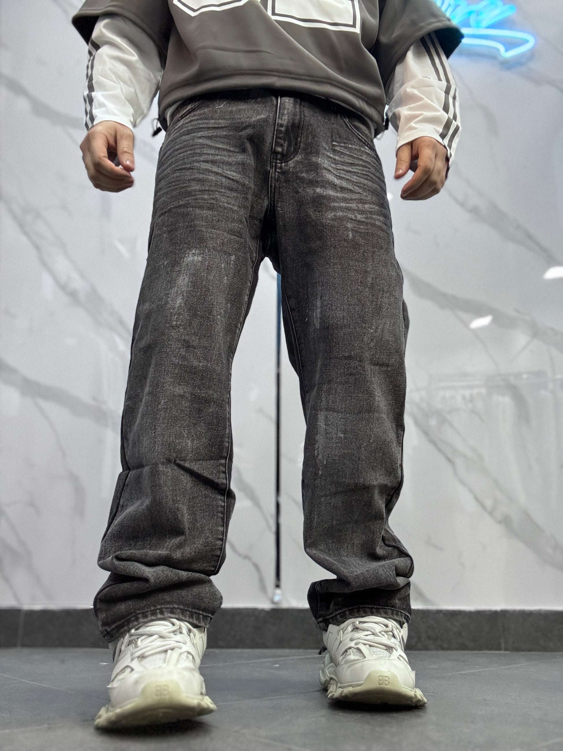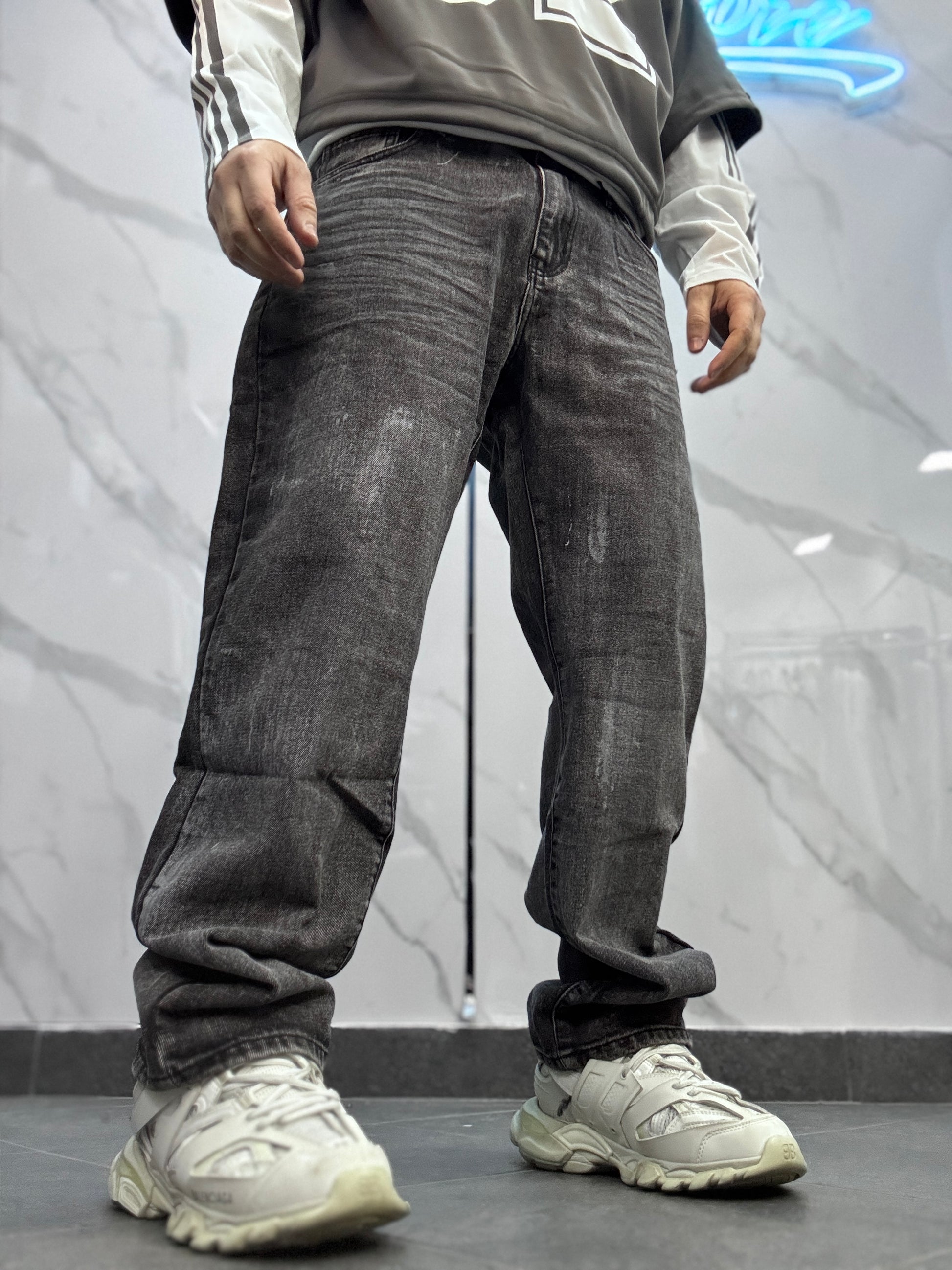 Jeans modello baggy, effetto spray Modello alto 1,78 × 77 kg taglia indossata 48