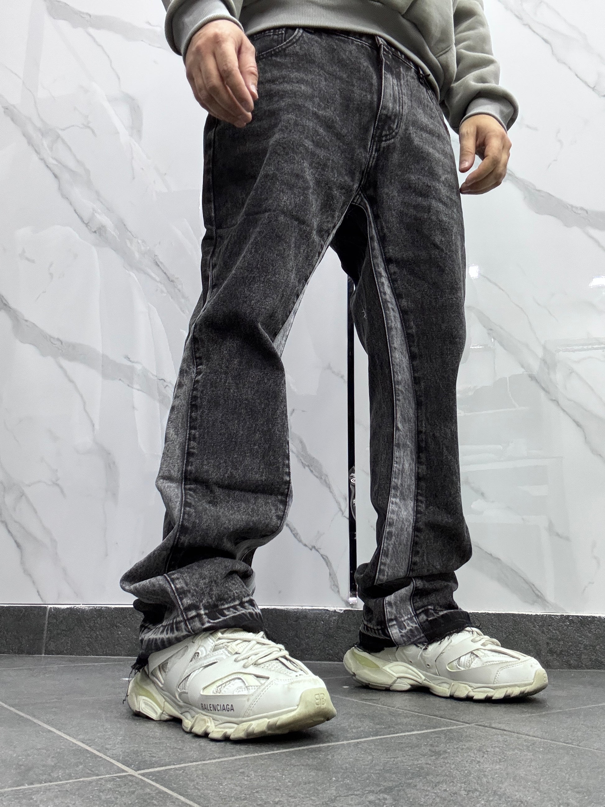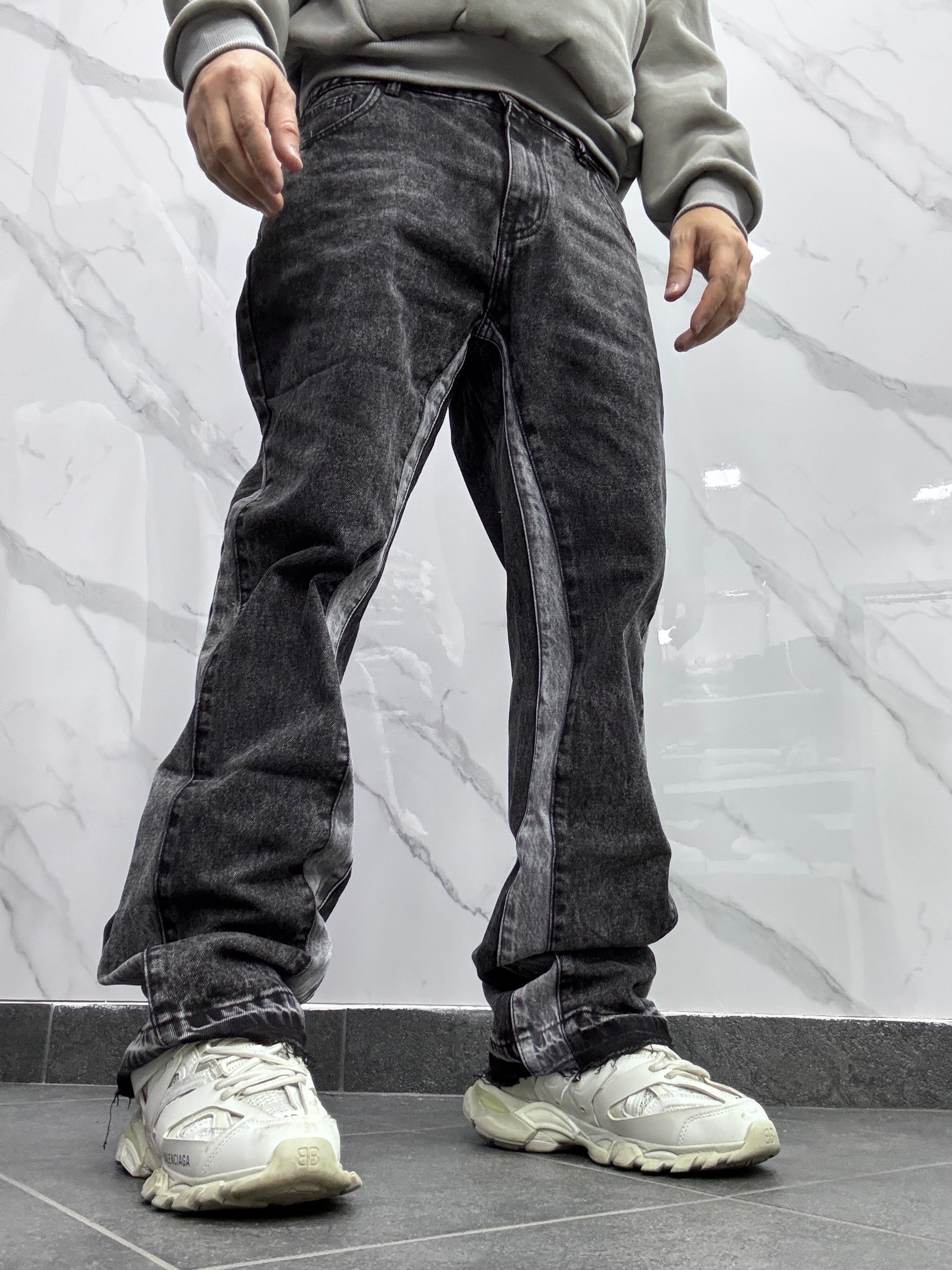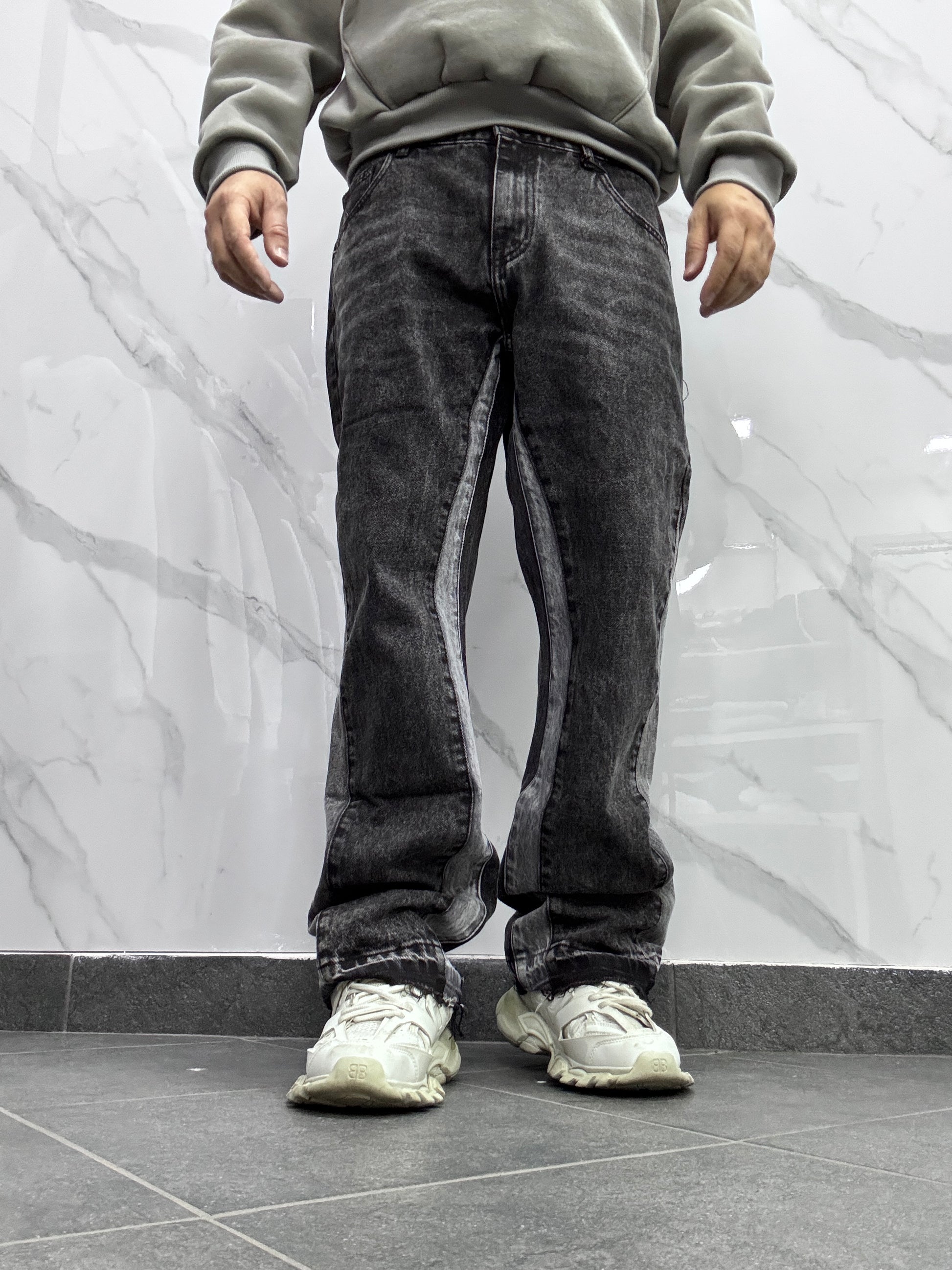 Jeans modello flared con banda laterale