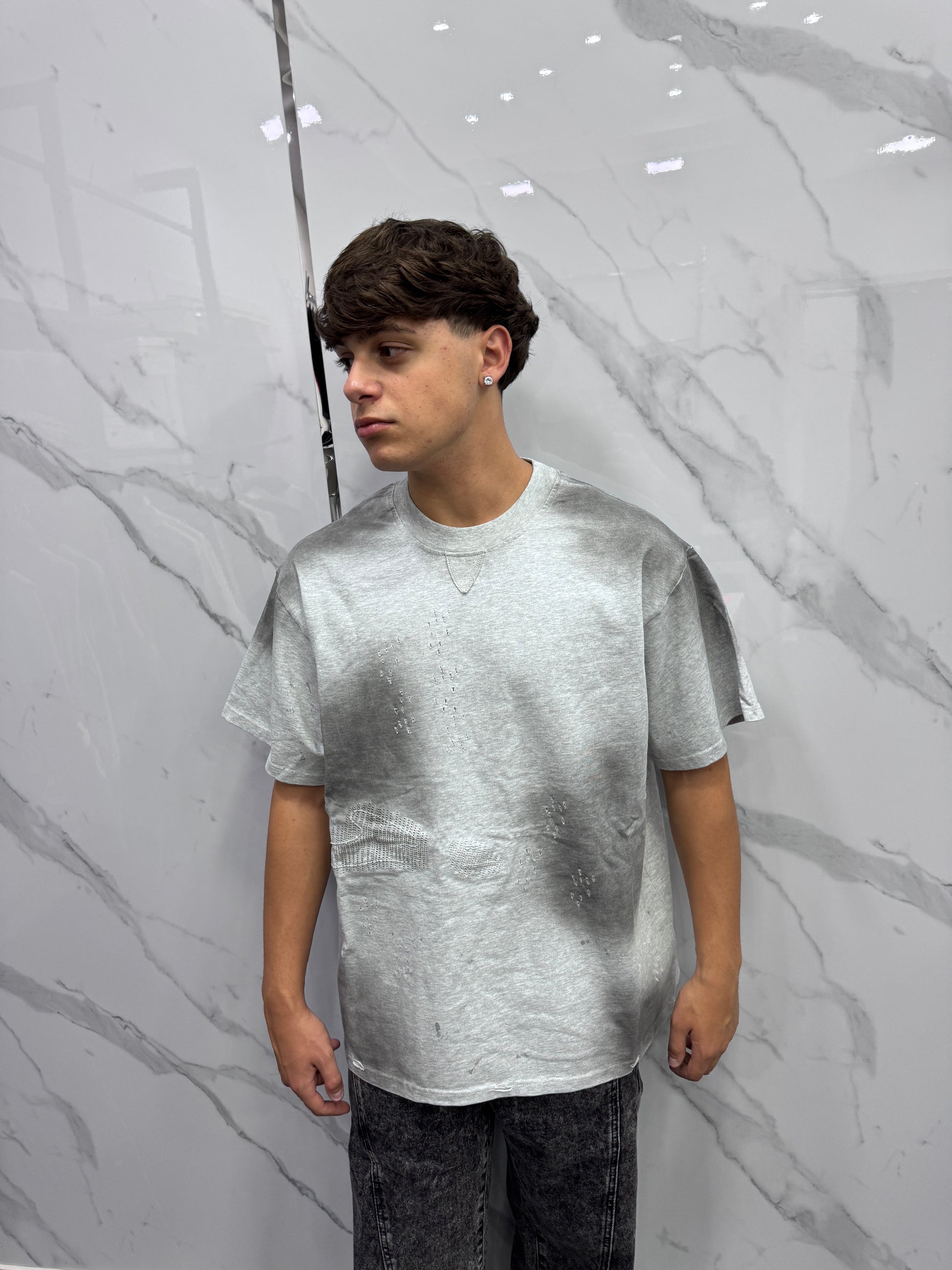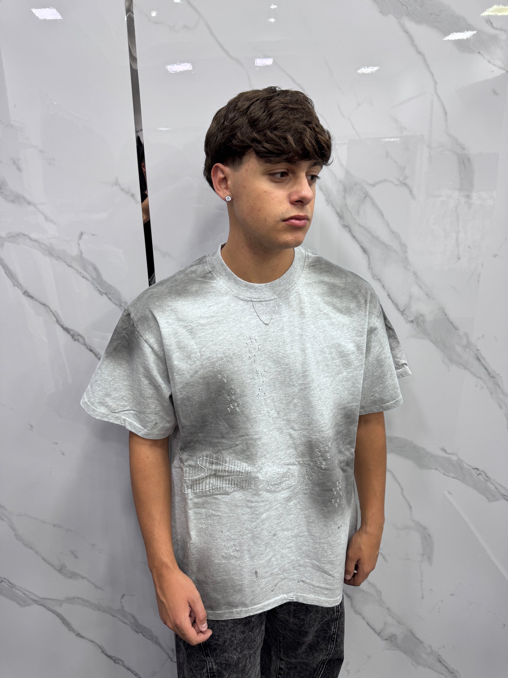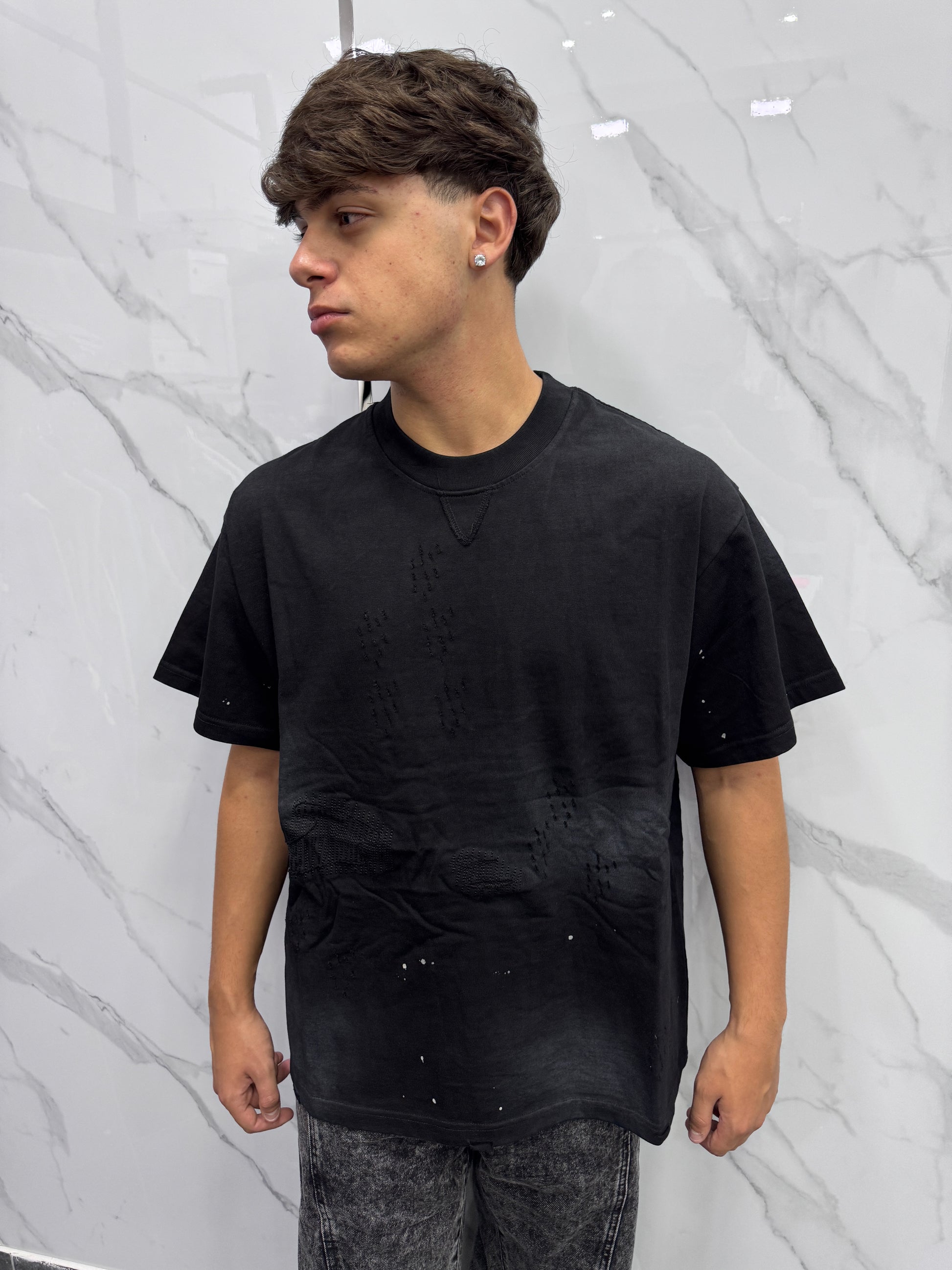 T-shirt tessuto premium tessuto slavato con micro rotture e cuciture