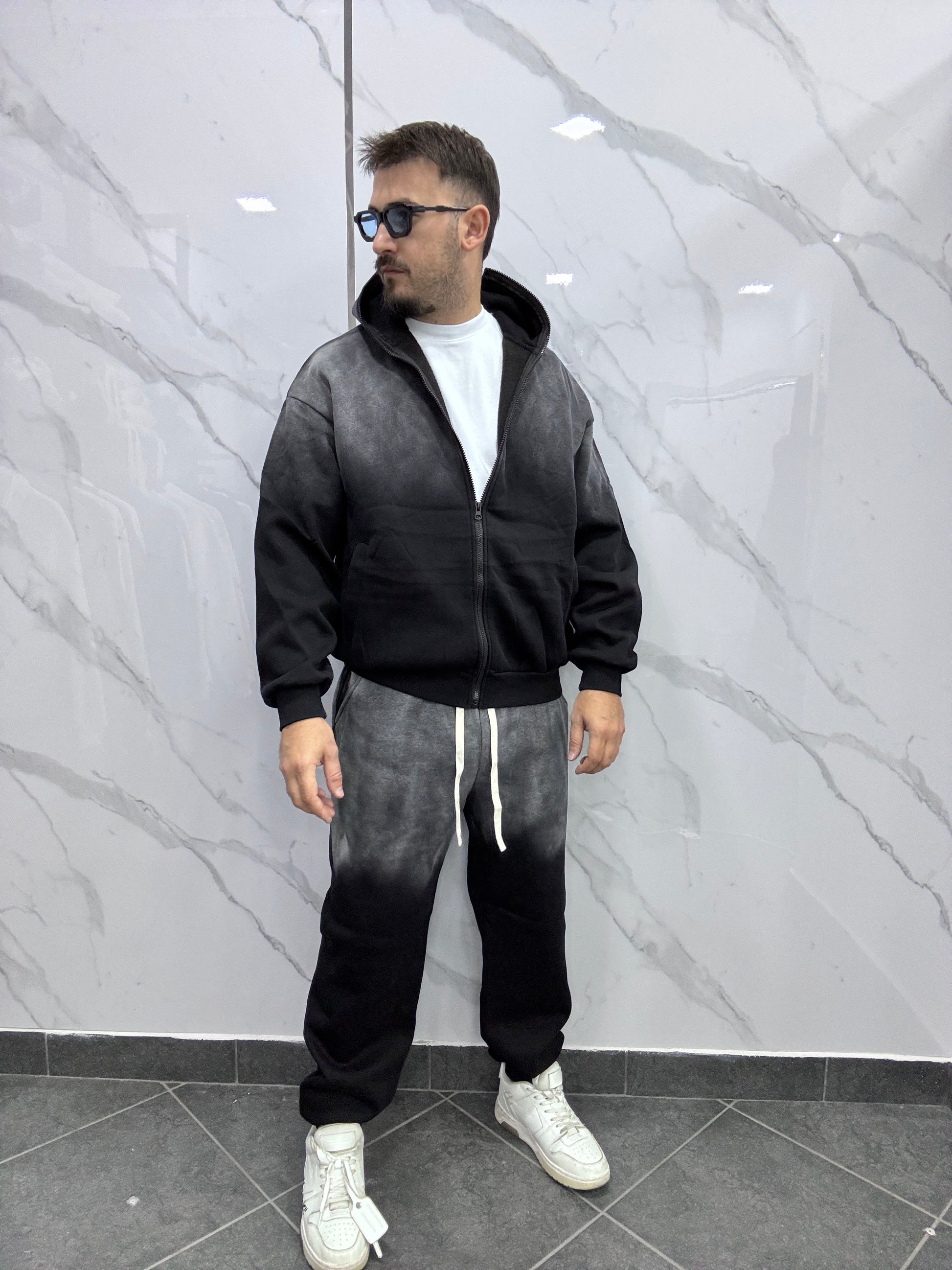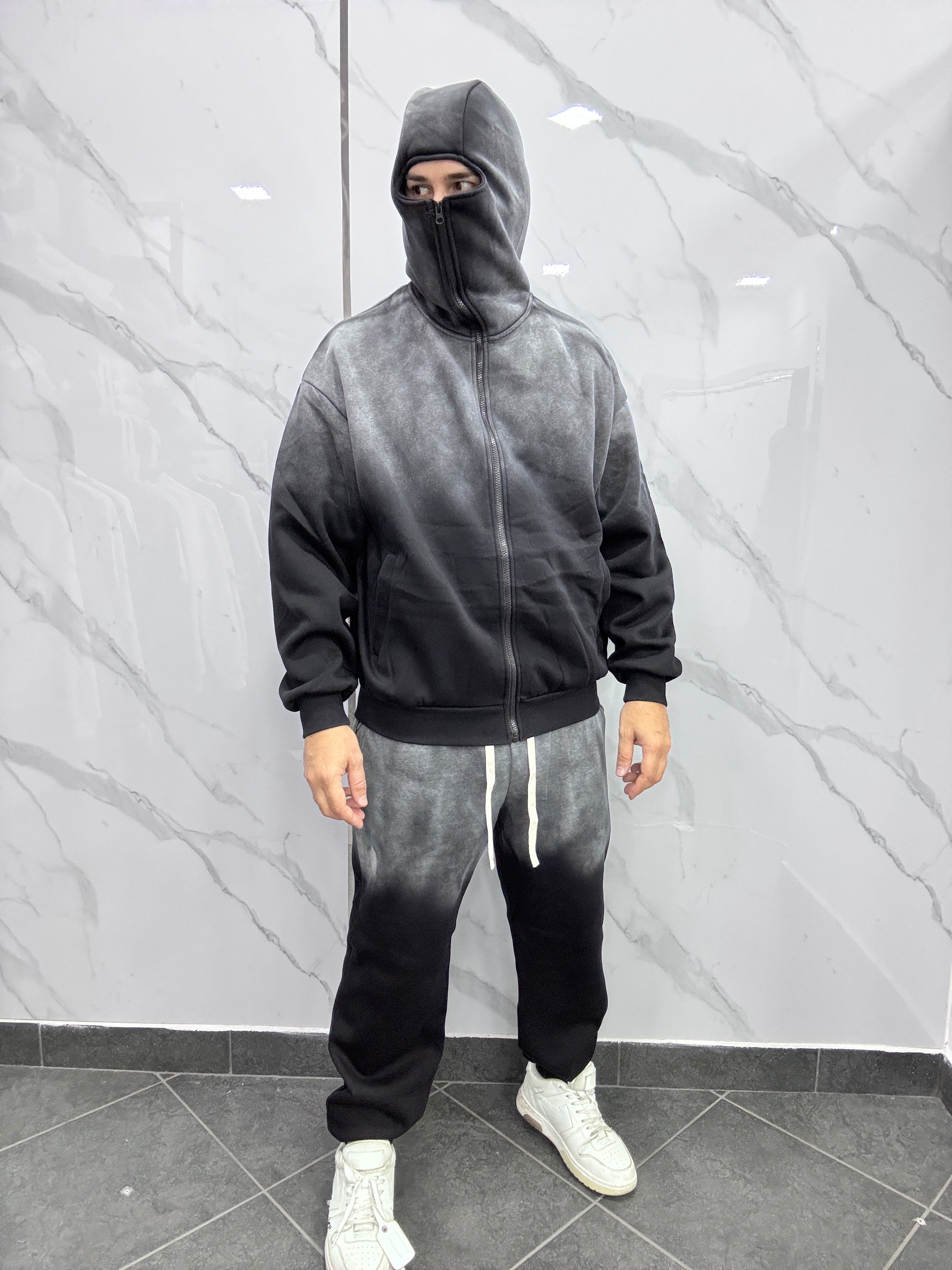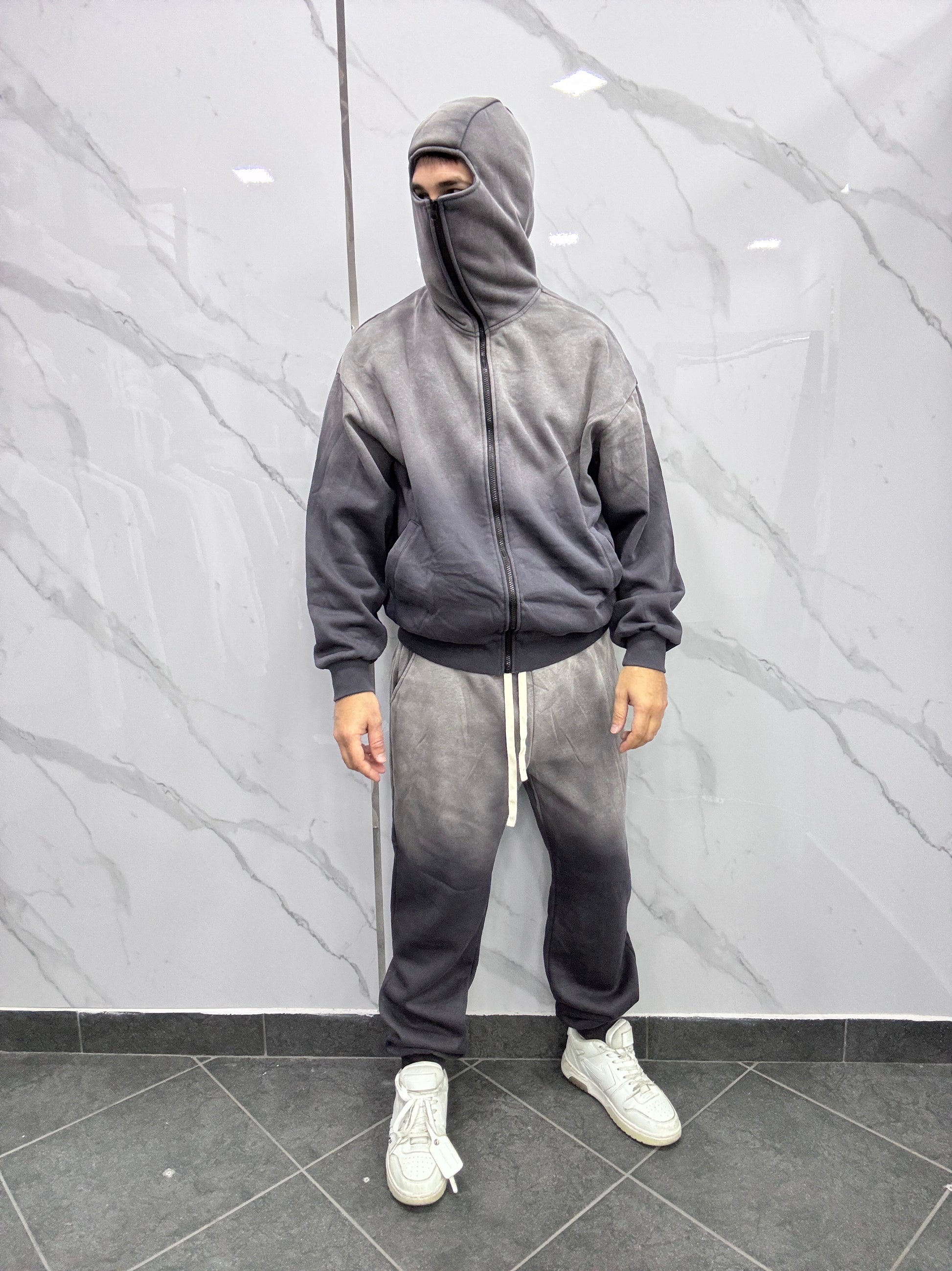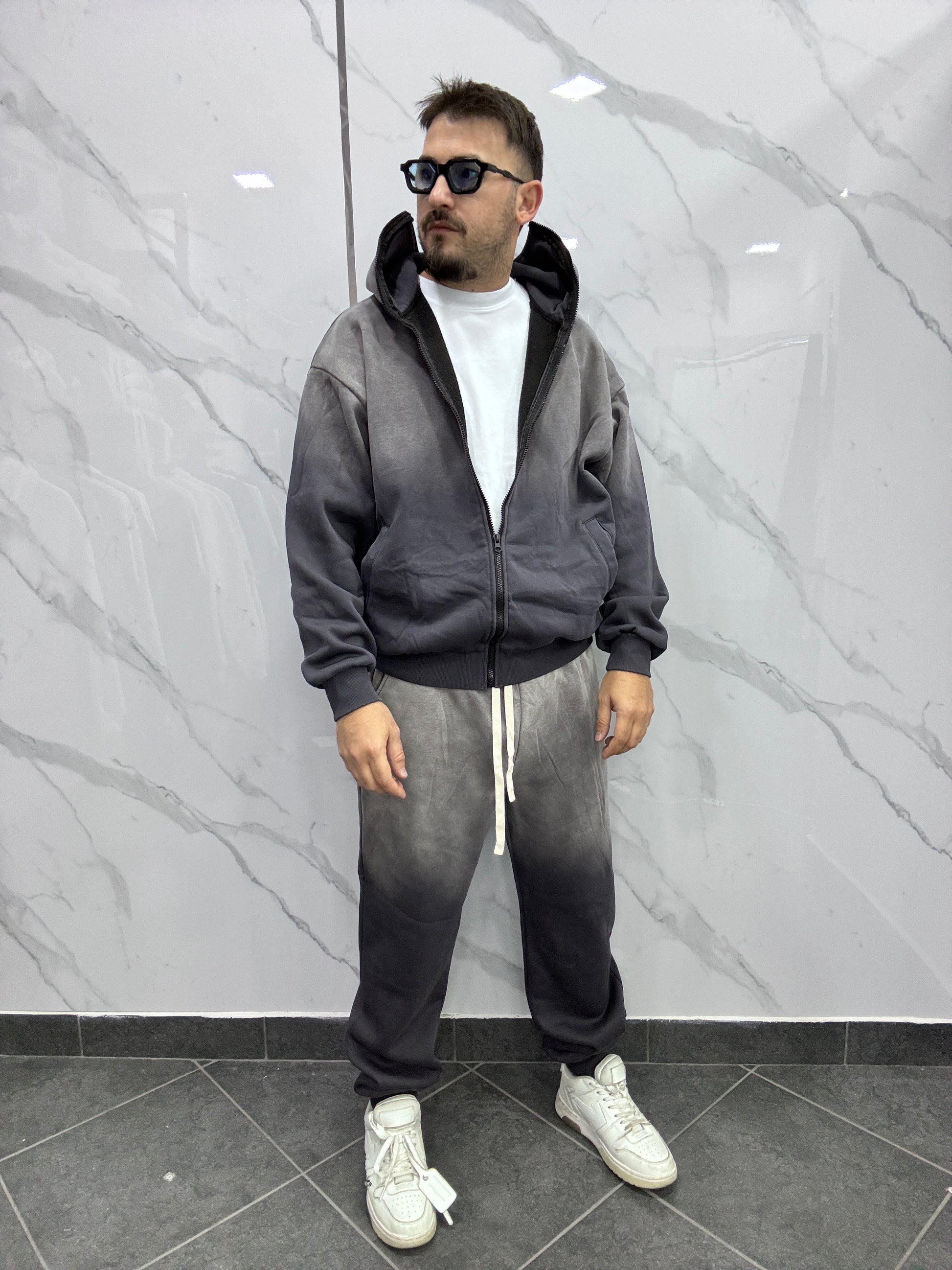 Completo in tuta felpa con zip modello balenclava e pantatuta fondo stretto