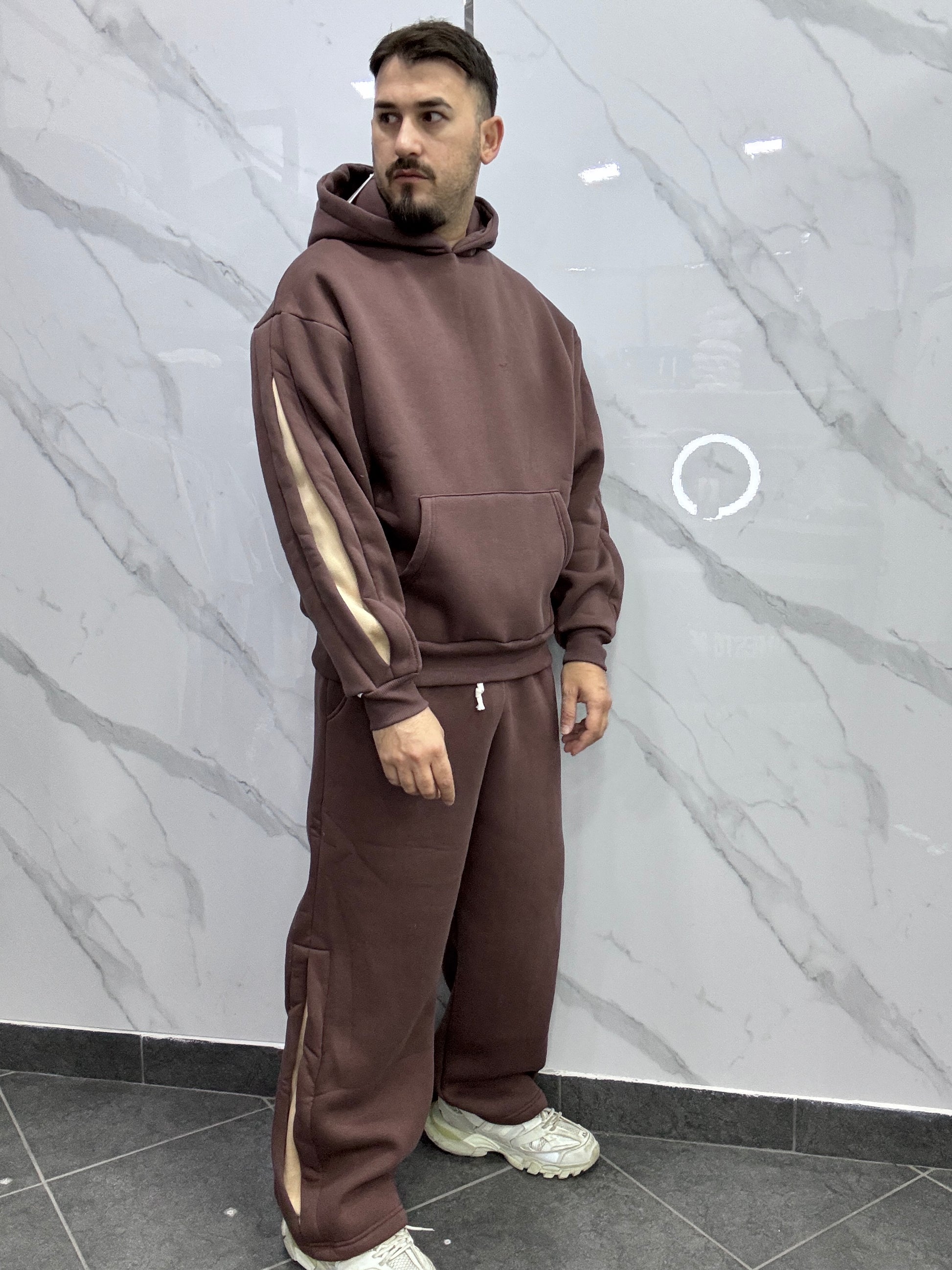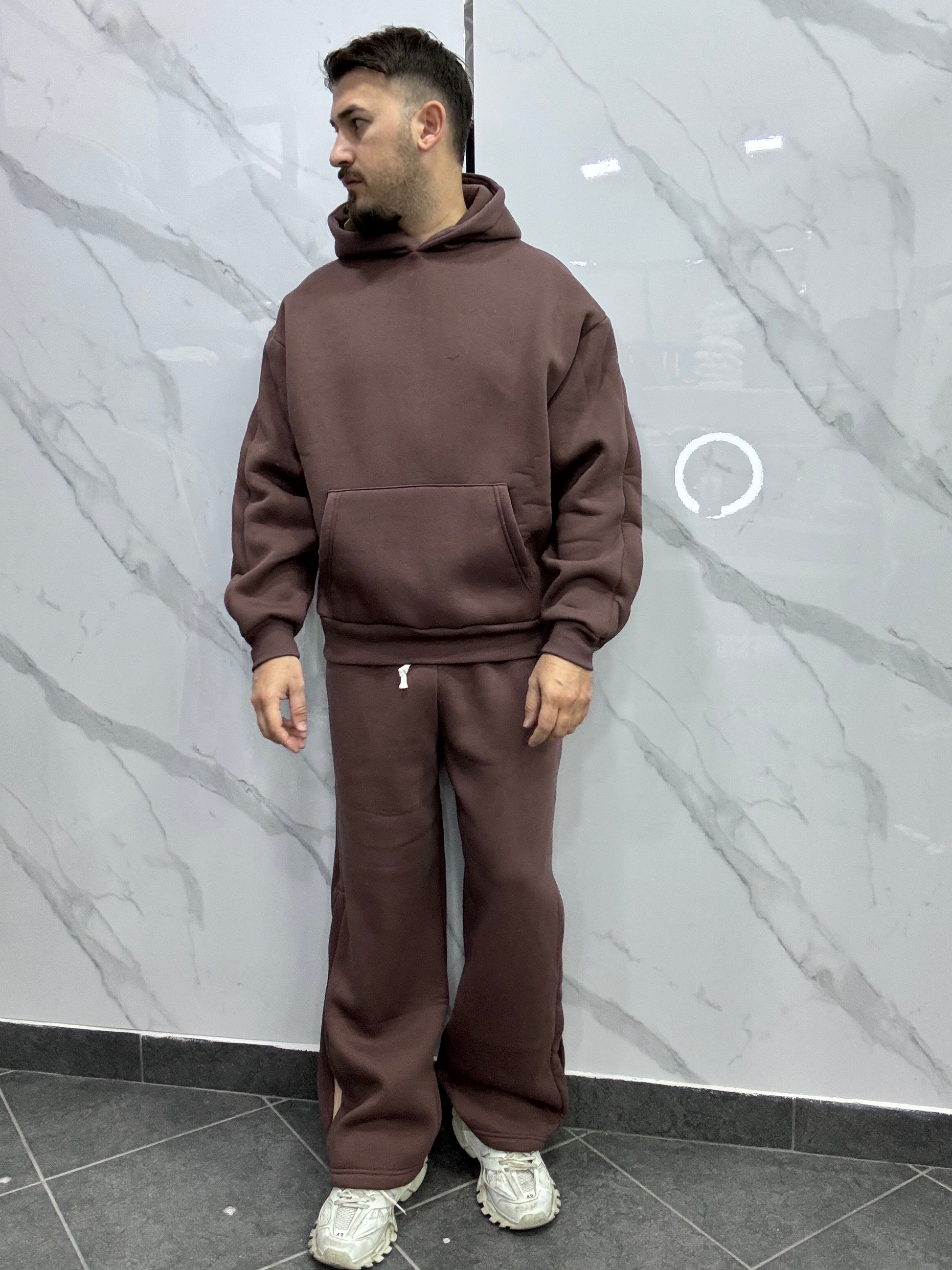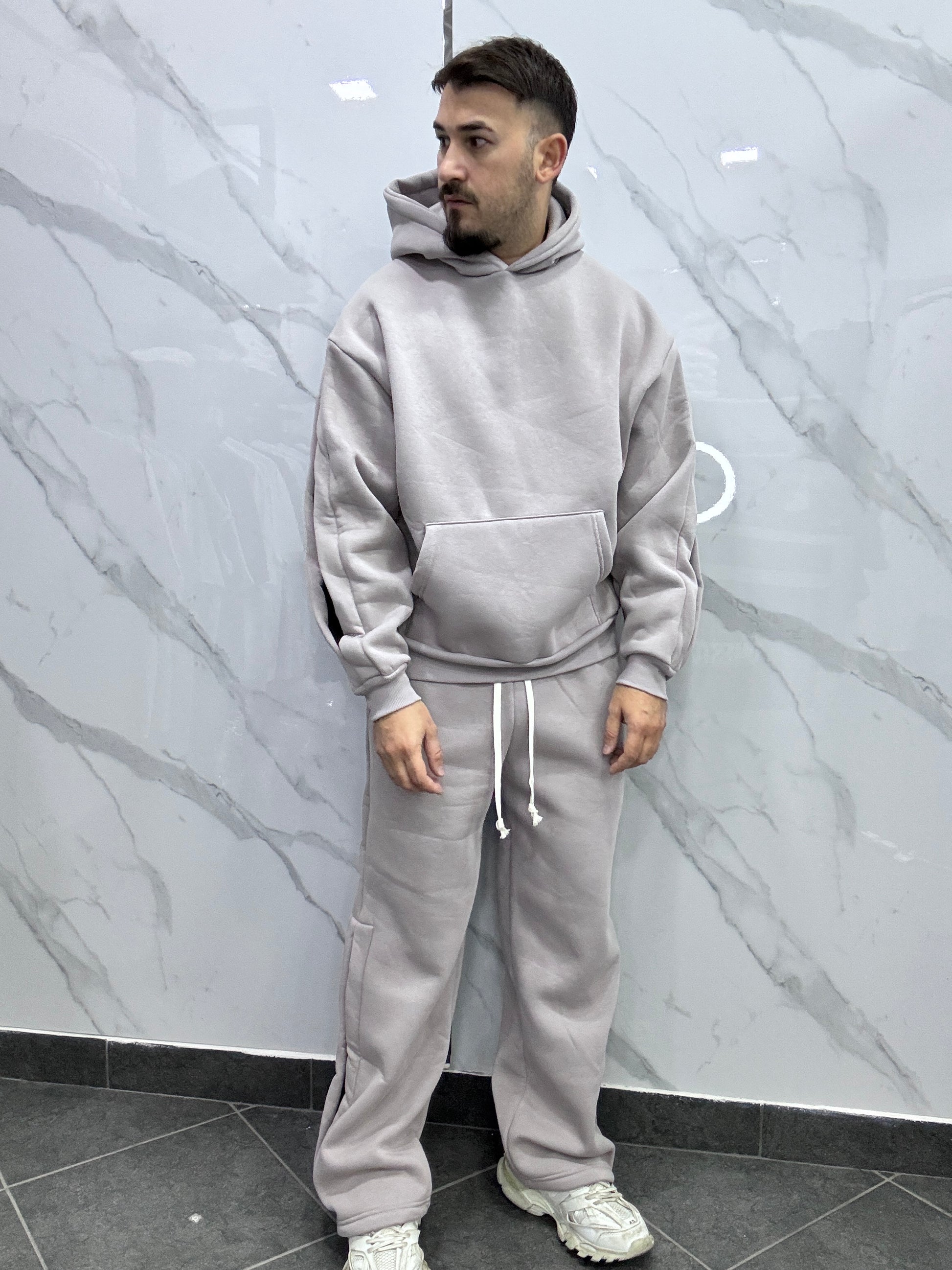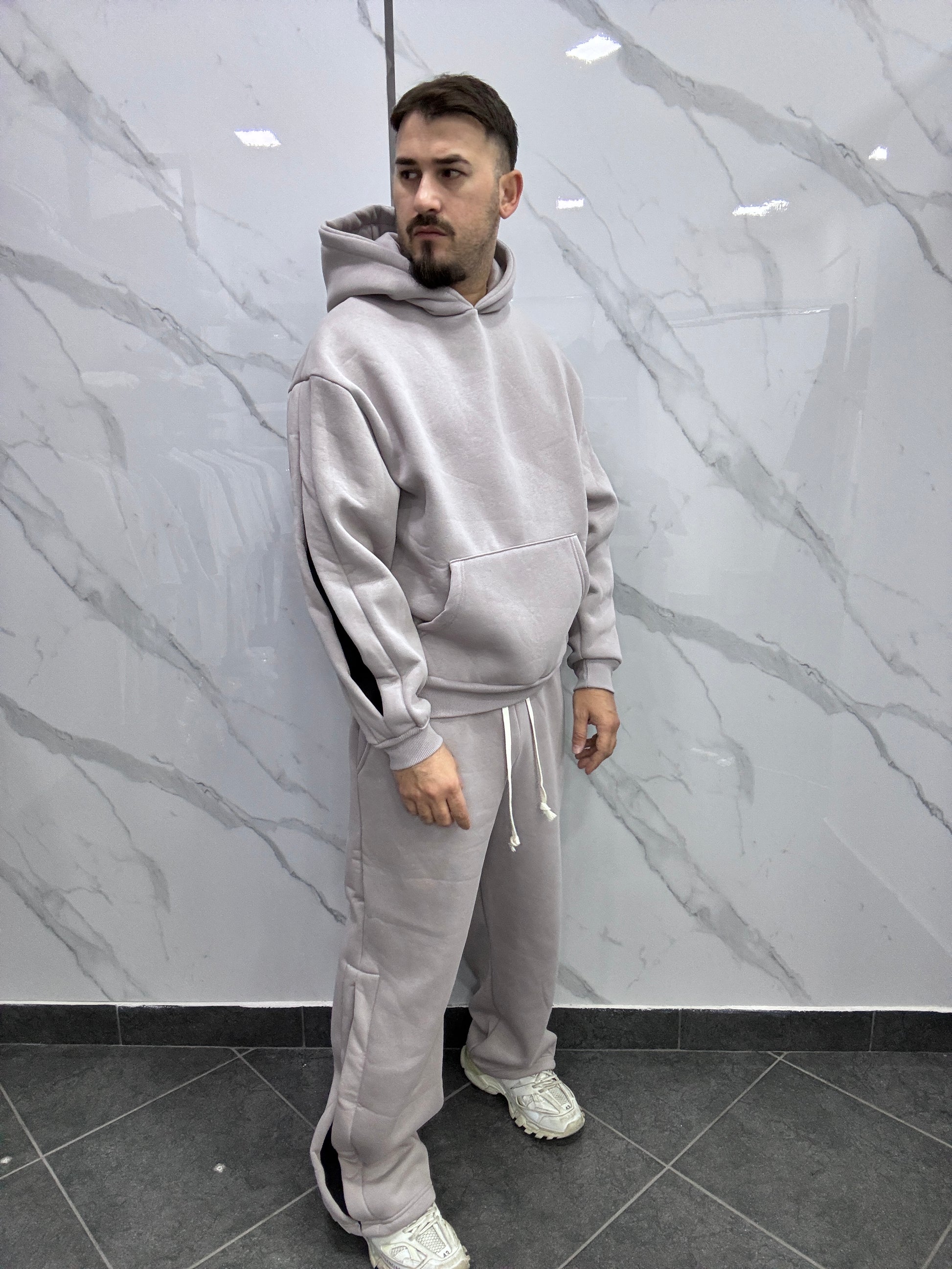 Completo in tuta felpa con cappuccio e pantalone fondo ampio